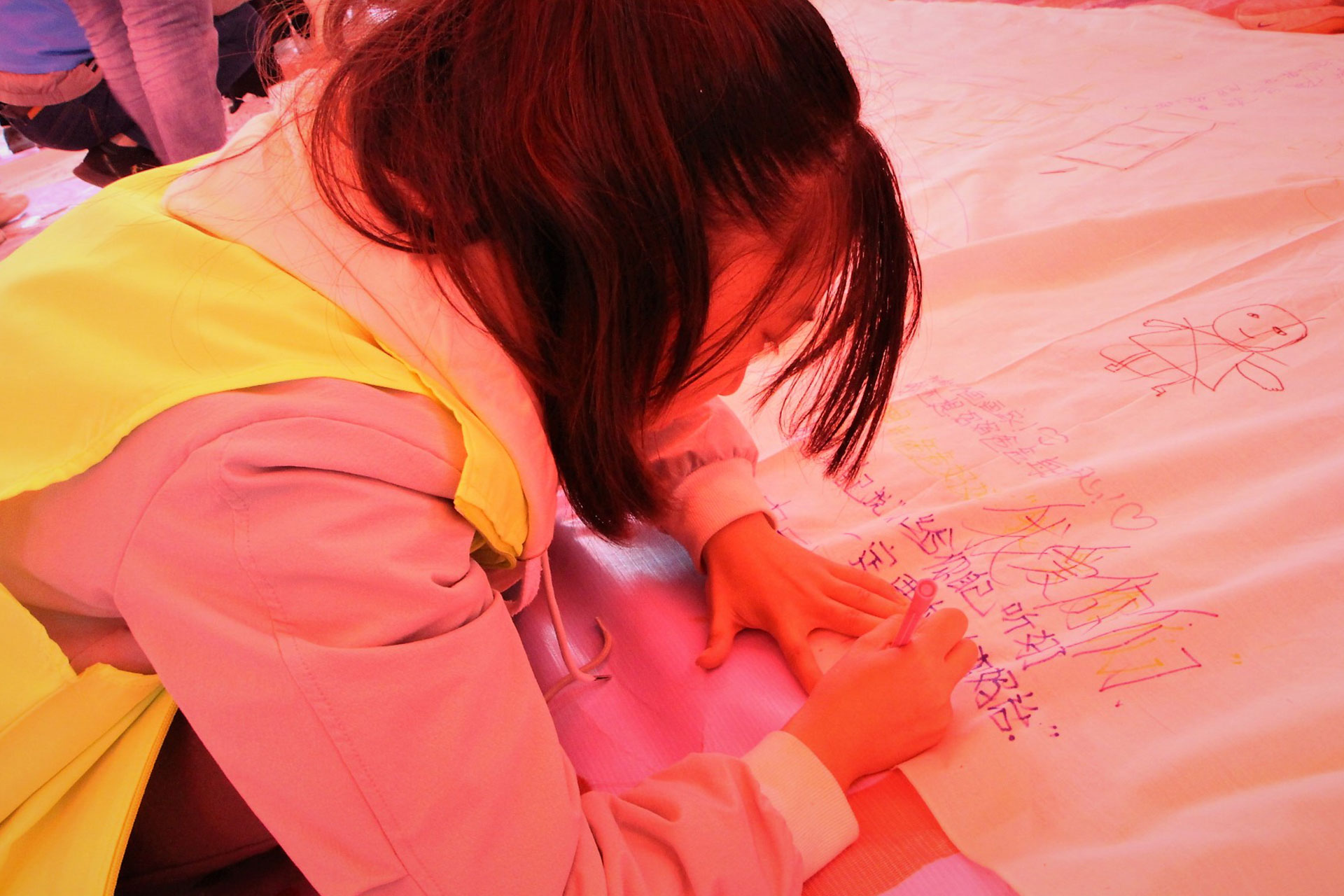 15点可爱的孩子们在白纸绘制自己的理想,小朋友们发挥自己的想象力和动手能力,在白纸上尽情涂抹,有些孩子想为父母买房,也有女孩选择对父母诉说自己的爱意。