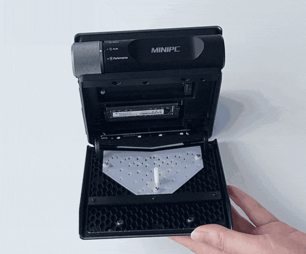 新颖的工业设计,来源于对人们日常使用的理解。当我们需要拓展存储或者内存时,几乎所有MINI PC 都需要用螺丝刀,打开外盒,然后再移动主板。因此不少人会担心操作不好,或者螺丝等掉了怎么办。