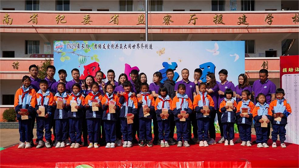 活动现场,创盈芯爱心代表和“IN29”团队为孩子们发放了书包、文具、小台灯等学习生活用品,对部分优秀学生发放了奖学金,让孩子们感受到了浓浓的温暖与关怀。同时,爱心代表们鼓励留守儿童要做自信和积极的孩子,要学会生活,学会关爱,学会感恩,做对家庭对社会有价值、有贡献的人!