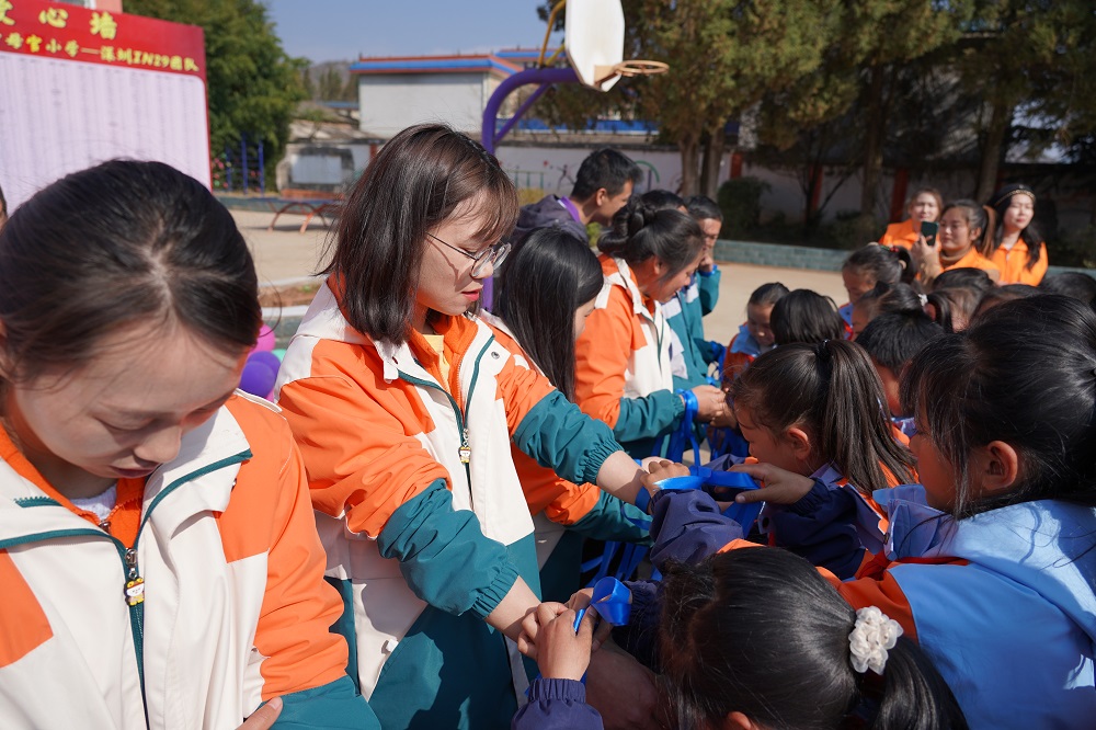 学生给老师绑蓝丝带