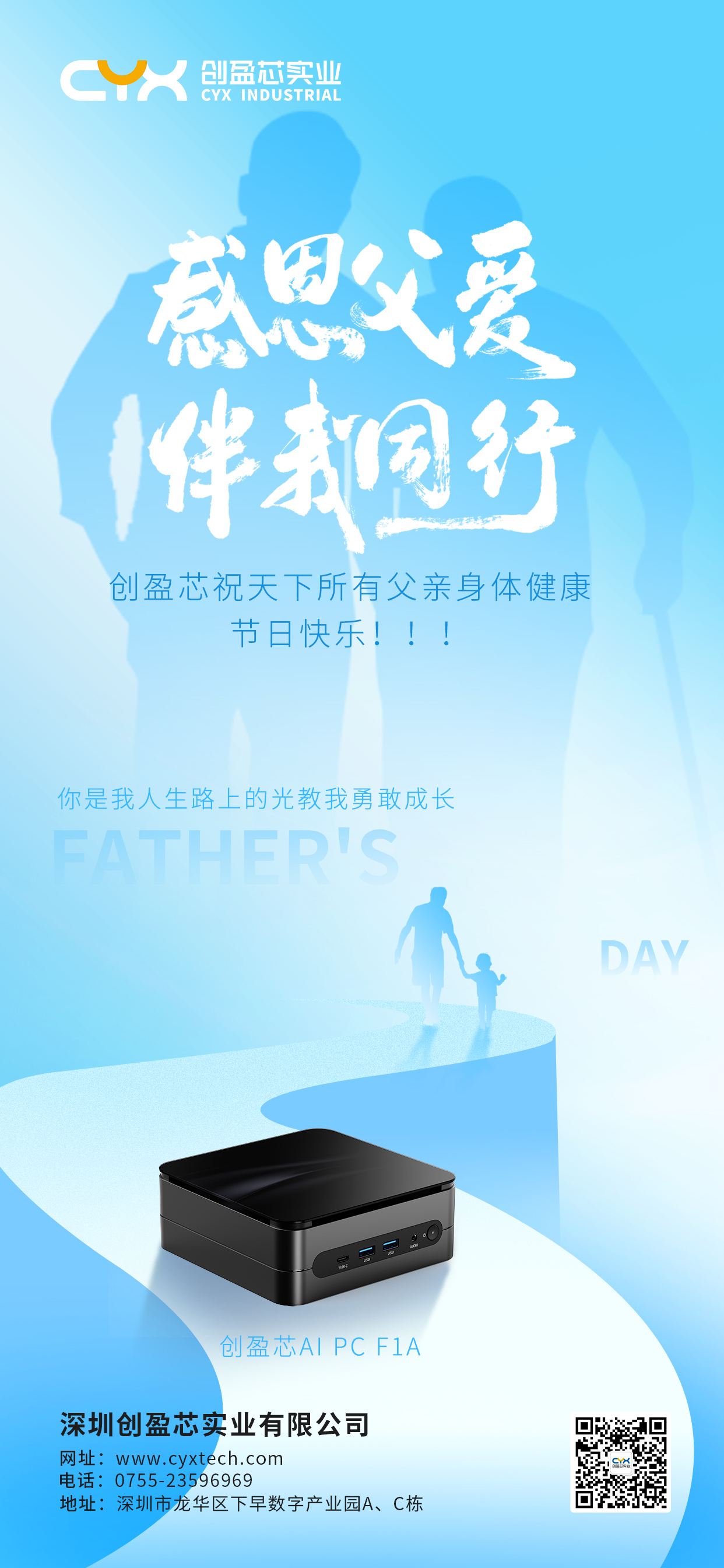 在这个特别的日子里,创盈芯实业致敬每一位“科技爸爸”——那些在数字世界中探索、在家庭与事业间平衡的超级英雄。正如我们的AI MINI主机,虽小却强,以高效智能,助力每一位父亲在工作与生活之间游刃有余,让爱与科技同行。我们深知,每一位父亲都是家庭的坚实后盾,正如创盈芯工控主机,默默守护,稳定可靠,为工业智能化进程筑基。