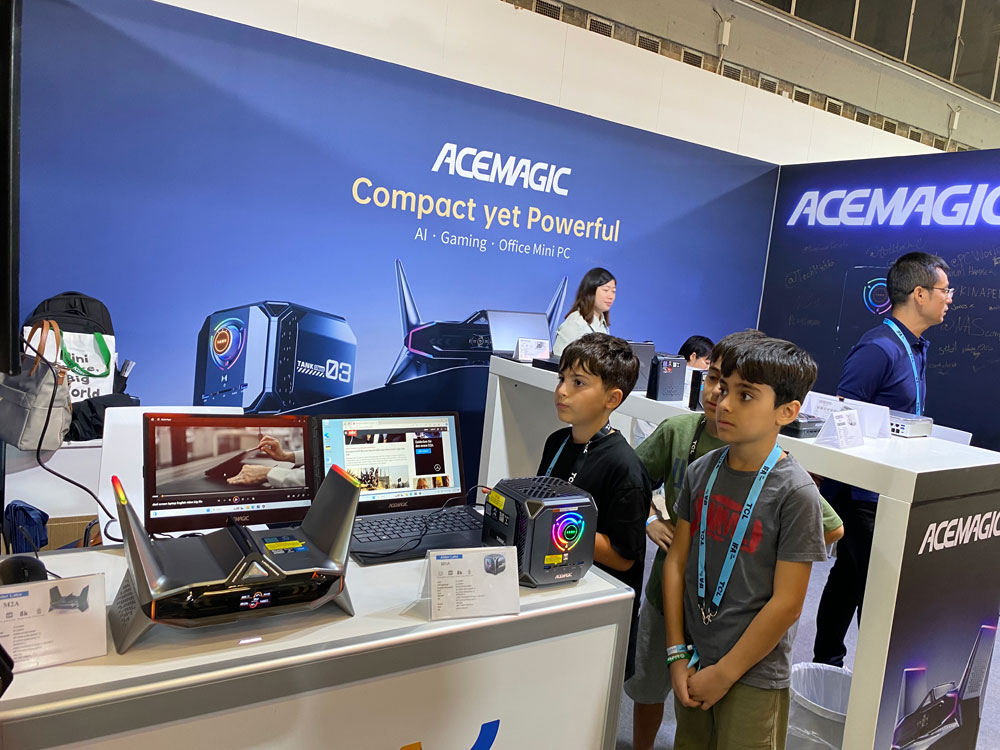 此次展会上,创盈芯实业位于25号馆150L-186,携旗下品牌ACEMAGIC带来了包括X1双屏笔记本、M1A高端游戏主机、AIPC(人工智能电脑)、迷你PC以及一系列工控主机在内的多款尖端产品。其中,X1双屏笔记本凭借其全球首创独特的横向双屏设计使用模式,成为了现场的一大焦点;而M1A高端游戏主机则凭借强劲的性能和时尚的外观设计赢得了游戏爱好者的青睐。